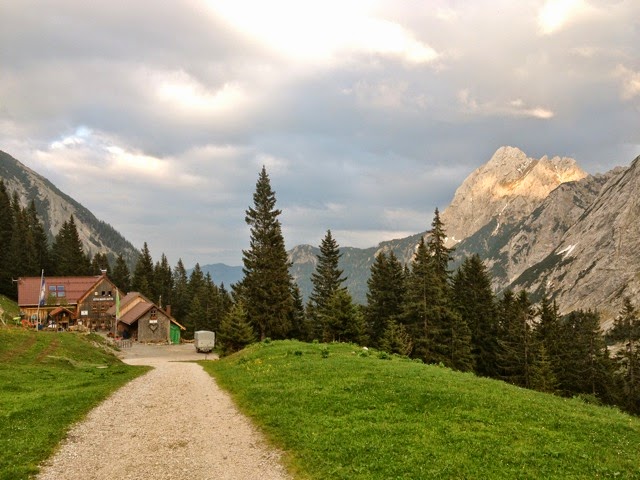 Nun kam sie doch, die Sonne. Und weil wir bei Knödel und Schlutzkrapfen vermutlich einen schönen Sonnenuntergang am Füssener Jöchle verpassten, nahmen wir mit dem Alpenglühen an Köllen- und Gehrenspitze vorlieb. Das sind sie, die Momente, die eine Hüttenübernachtung in den Bergen so besonders machen: wenn in der Abenddämmerung die Berge noch stiller und erhabener erscheinen. Nach einer Runde Schnaps fiel ich in meiner gemütlichen Hüttenkoje ins Knödel-Koma.